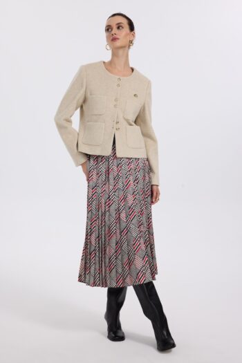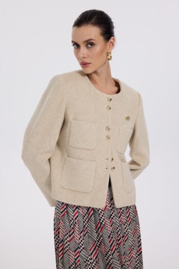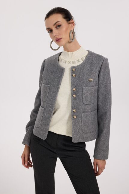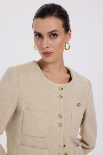 Dört torba cepli, broşlu, kaşe, düğme kapamalı Ürün Kalıbı: Tam Kalıp Ürün Kalınlığı: Orta Ürün Boyu: 50 cm Kumaş İçeriği: %75 pes %25 vis Ürün Sezonu: sonbahar/kış Manken Ölçüleri: 1.76 cm 84/61/89 Beden: 36 / S