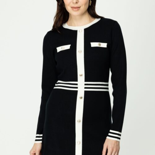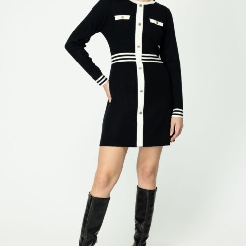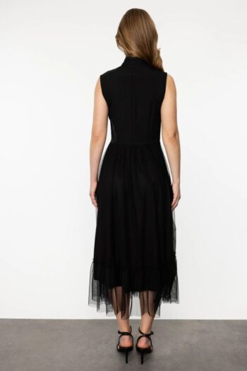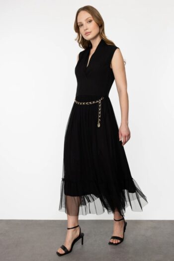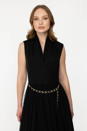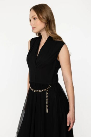 V Yaka Zincir Kemerli Siyah Kadın  Elbise 4084-2Y4